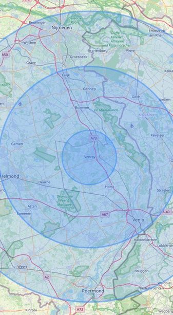 Binnen een straat van 7 km vanaf Venray: €200,- (waarde <€50.000,-) (>€50.000,- in overleg)